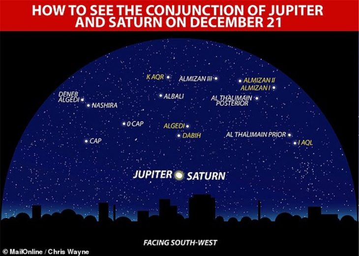 Η τελευταία φορά που αυτοί οι δύο πλανήτες βρέθηκαν σε τόσο κοντινή απόσταση ήταν στις 4 Μαρτίου 1226. Ο Αστέρας της Βηθλεέμ ή αλλιώς ο Χριστουγεννιάτικος Αστέρας. Ονομάστηκε έτσι καθώς από τη σύζευξη των δύο πλανητών, δημιουργείται ένα λαμπρό σημείο φωτός. Το φαινόμενο αυτό μπορεί να παρατηρηθεί μόνο από τη Γη.