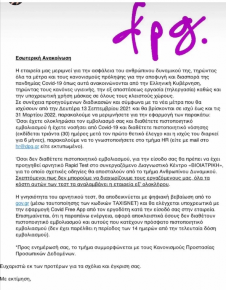 Σε μία σπουδαία κίνηση προχώρησε ο Δημήτρης Γιαννακόπουλος, αποδεικνύοντας έμπρακτα πως δεν πρόκειται να διαχωρίσει τους υπαλλήλους του σε εμβολιασμένους και ανεμβολίαστους.