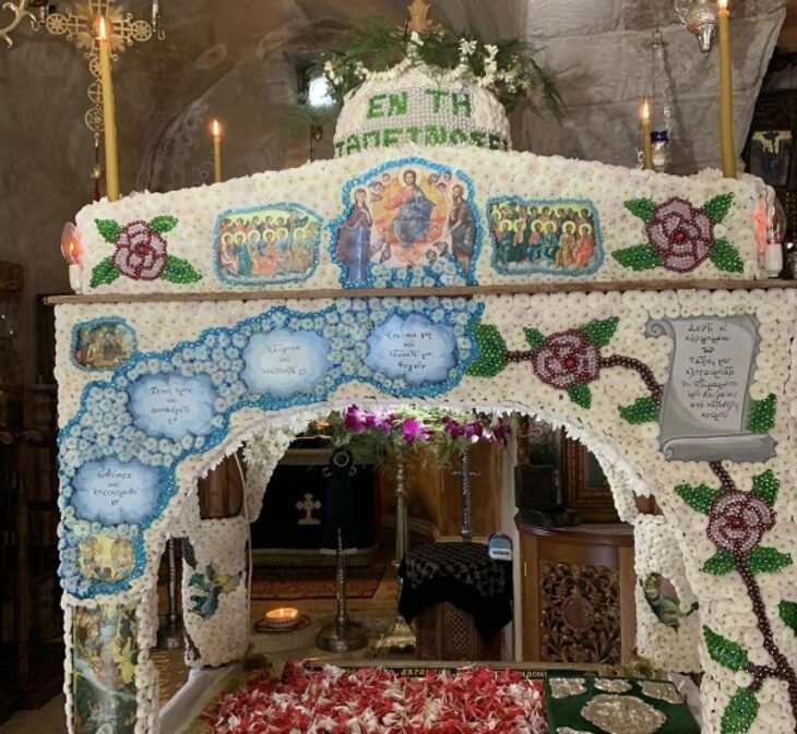 Ο Ηγούμενος της Μονής π. Παντελεημων, δημοσίευσε μερικές φωτογραφίες από τον εντυπωσιακά ανθοστολισμένο Επιτάφιο.