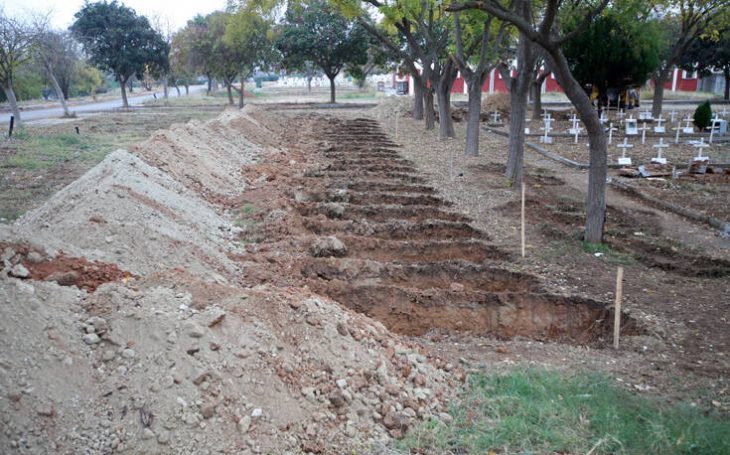 Καθώς τα θύματα του κορονοϊού δεν επιτρέπεται να θάβονται στα κοινά κοιμητήρια, σκάβονται διαρκώς νέοι τάφοι με προσωρινούς σταυρούς σε διαφορετικά σημεία της πόλης. Από τον Απρίλιο έως και σήμερα, έχουν πραγματοποιηθεί ήδη 160 ταφές , με τις πλείστες αυτών να είναι μόνο το τελευταίο τρίμηνο.