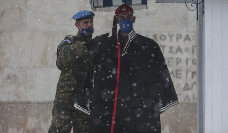 Eύζωνες: Φρουρούν το μνημείο σε θερμοκρασίες υπό το μηδενός