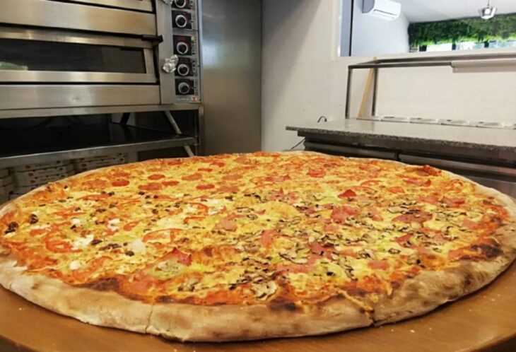 Συγκεκριμένα, η πρόκληση είναι πως αν φάνε την πίτσα που ζυγίζει 7 κιλά και έχει διάμετρο 3,2 μέτρα, μια παρέα ατόμων, παίρνουν 100 ευρώ.