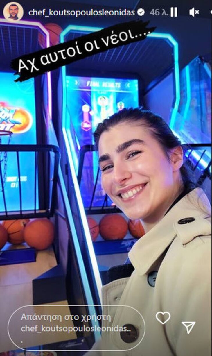 Αυτή φορά ο Λεωνίδας Κουτσόπουλος μας έκανε την έκπληξη και ανέβασε στα stories του μια φωτογραφία της συντρόφου του, η οποία βρίσκεται σε χώρο με παιχνίδια και έγραψε, τρολάροντας τη διαφορά ηλικίας τους: «Αχ αυτοί οι νέοι»