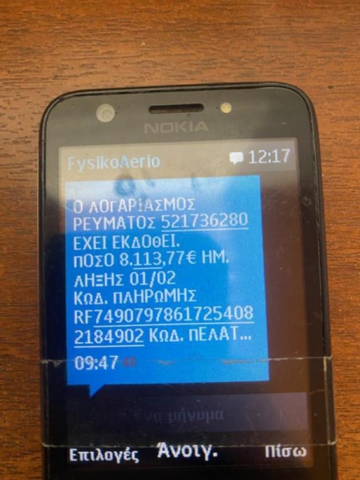 Όπως δήλωσε ο ίδιος περιγράφοντας την απελπιστική κατάσταση που βιώνει: «Μιλάμε για εγκλήματα. Κάνω απεργία πείνας. Έχω μια ταβέρνα σε ένα χωριό με 300 κατοίκους. Πλήρωνα όλα τα χρόνια το τετράμηνο γύρω στις 2.500 χιλιάδες ΔΕΗ και τώρα μου ήρθε 12.500 χιλιάδες». Να σημειωθεί σε αυτό το σημείο ότι ο ίδιος έλαβε αρχικά έναν εκκαθαριστικό λογαριασμό της τάξεως των 12.500 ευρώ, από τα οποία έχει καταφέρει να πληρώσει ήδη τα 4.000 ευρώ.