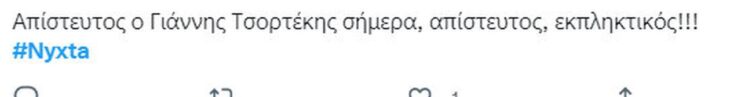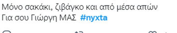 «Μόνο ζιβάγκο σακάκι κι από μέσα απών….» ήταν η ατάκα του που έκανε ακόμα και τη Ναταλία Γερμανού να τη σχολιάσει στο Twitter.