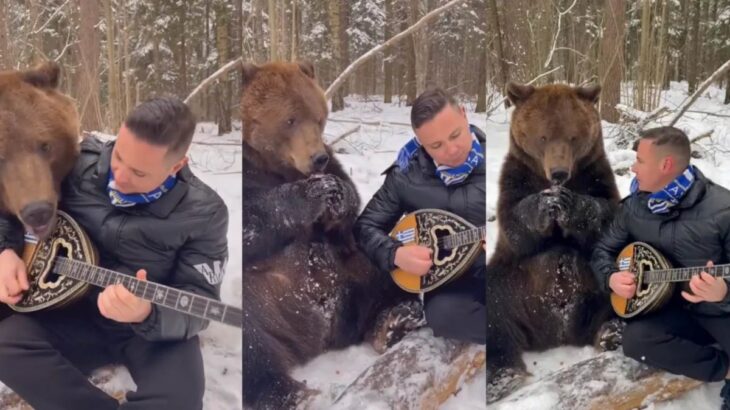 Η ανάρτησή του έχει αφήσει άναυδους τους διαδικτυακούς του φίλους, καθώς απεικονίζεται σε βίντεο, σε χιονισμένο τοπίο να παίζει συρτάκι με το μπουζούκι του και μια μεγάλη αρκούδα να κάθεται δίπλα του… γλείφοντάς του το χέρι αρχικά και έπειτα απολαμβάνει τις πενιές τρώγοντας ήσυχα ήσυχα το «γεύμα» της -που ευτυχώς δεν είναι ο Δημήτρης.