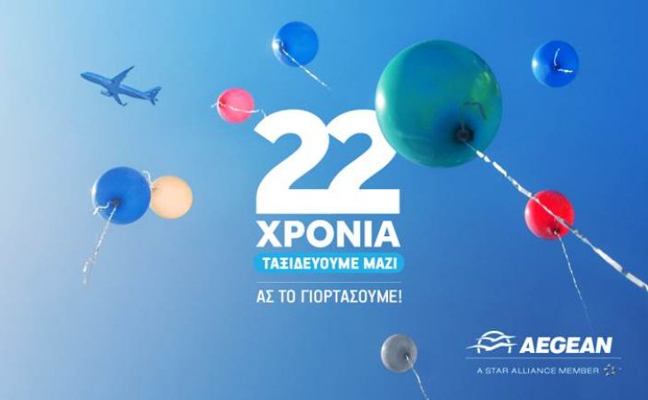 Η AEGEAN γιορτάζει 22 χρόνια επιτυχημένης λειτουργίας και εύχεται σε όλους ακόμα περισσότερα κοινά ταξίδια και τα επόμενα 22!