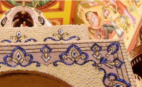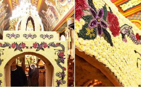 Πάνω από 80.000 χάντρες και πέρλες και περίπου 20.000 χρυσάνθεμα – μινιατούρες χρειάστηκαν και φέτος για τον στολισμό του Επιταφίου…