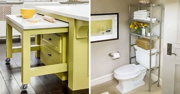 Πάγκος κουζίνας με ροδάκια θα σας βοηθήσει να εξοικονομήσετε χώρο στην κουζίνα.