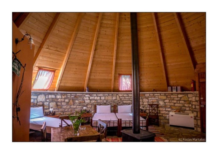 Ο ιδιοκτήτης, Νίκος Ζάψας, άφησε τη δουλειά του στην Άρτα, αγόρασε την 8 στρεμμάτων ορεινή έκταση πριν 9 χρόνια και μαζί με την γυναίκα του και τα δύο τους παιδιά εγκαταστάθηκαν μόνιμα σε ένα από τα 4 σπίτια–ιγκλού.
