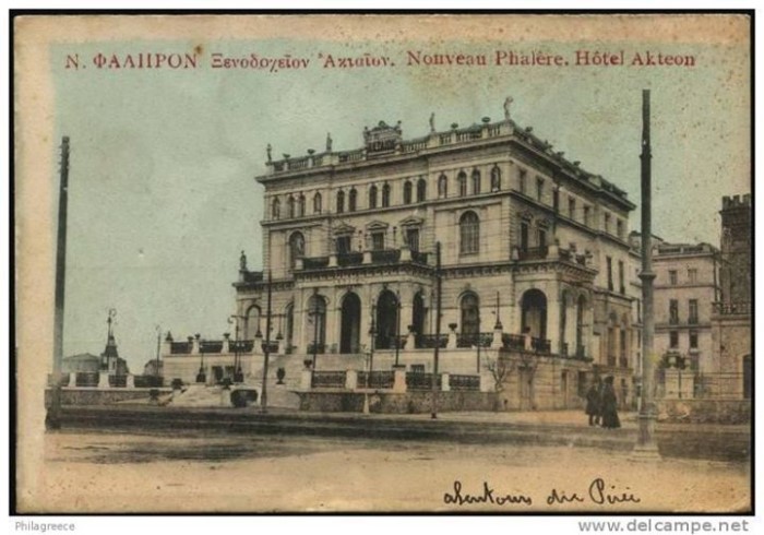 Στις 22 Σεπτεμβρίου του 1900 τοποθετείται για πρώτη φορά σε εργοτάξιο ενός οικοπέδου που ανήκε λίγο καιρό πριν στον πρώτο οικιστή του Νέου Φαλήρου τον Γιαννόπουλο, μια τεράστια πινακίδα που αναγράφει «Μέγα ξενοδοχείον το Ακταίον». Είναι η πρώτη φορά που το όνομά του ξενοδοχείου που ήδη κτίζεται ακούγεται στην περιοχή του Νέου Φαλήρου.
