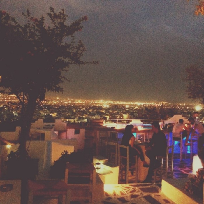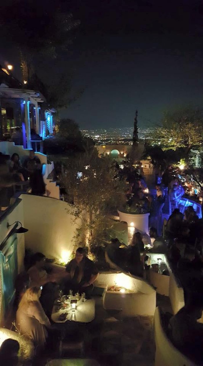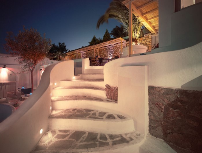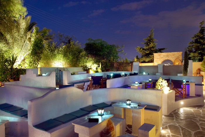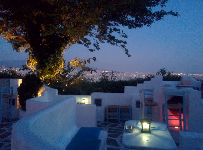 Πλακόστρωτοι διάδρομοι, χτιστοί λευκοί καναπέδες και μικρά μαξιλάρια για να καθίσετε αναπαυτικά, ασβεστωμένα τοιχάκια, μικρά σκαλάκια, μπλε λεπτομέρειες, έναστρος ουρανός, χαλαρωτική μουσική και ανθισμένα λουλούδια συνθέτουν ένα μοναδικά ατμοσφαιρικό σκηνικό που κλείνει μέσα του όλη τη γοητεία των Κυκλάδων και αποτελεί το open air στέκι όσων αναζητούν το ρομάντζο και την κοσμοπολίτικη διασκέδαση!