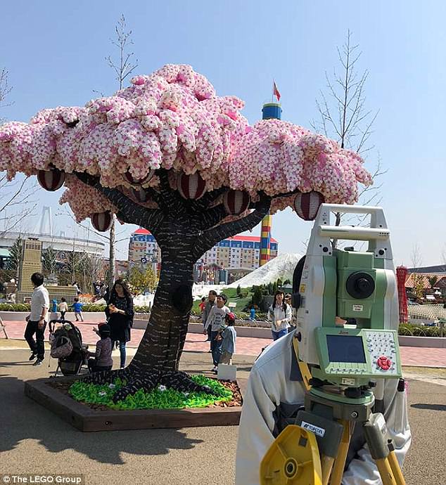 Με γρασίδι στη βάση του, μεγάλα κλαδιά, έναν θόλο από άνθη κερασιάς και ιαπωνικά φαναράκια (από LEGO κι αυτά), για να φωτίζουν το δέντρο όταν πέσει το σκοτάδι, το δέντρο αυτό είναι μοναδικό.