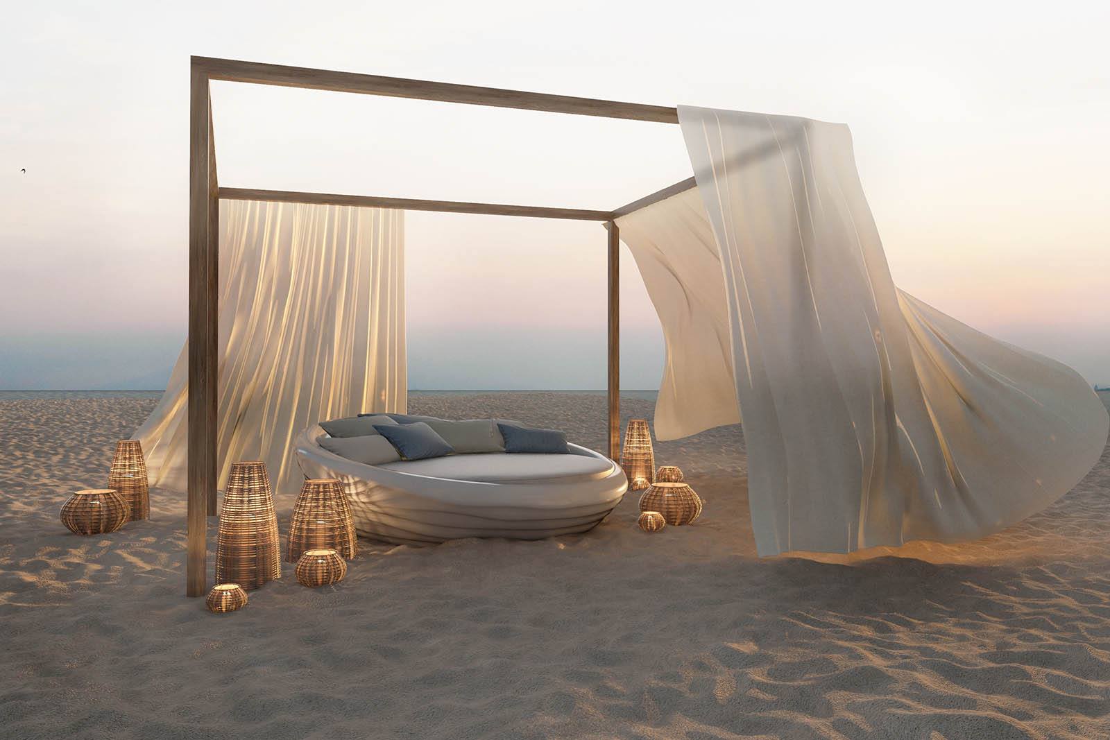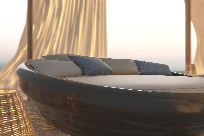 Με τις συγκεκριμένες δημιουργίες να ανήκουν στην κατηγορία επίπλων εξωτερικού χώρου, το όνομα συνδέεται φυσικά με το καλοκαίρι, φυσικά με την Ελλάδα, αλλά κυρίως με τα κύματα που σχηματίζεται από την άμμο στον πάτο της θάλασσας, τα οποία έχουν αποτυπωθεί και στα πλαϊνά του καναπέ, θυμίζοντας σε όσους τον πιάνουν τον… βυθό.