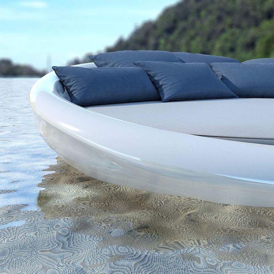 Παρ΄όλο που με την πρώτη ματιά μοιάζει με φουσκωτό, οι συγκεκριμένοι καναπέδες δεν έχουν καμία σχέση με αυτό που παίρνεις όλα αυτά τα χρόνια μαζί σου στην θάλασσα, καθώς το υλικό τους έχει σχεδόν την ίδια υφή με το μάρμαρο και το βάρος τους είναι το ίδιο με έναν κανονικό καναπέ.