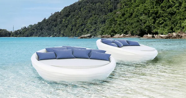 Σε περίπτωση, λοιπόν, που το μυαλό σου πάει σε κάτι καλοκαιρινό όπως μία ξαπλώστρα ή μία αιώρα, στην πραγματικότητα τα Waves είναι χειροποίητοι καναπέδες (με μήκος 2 μέτρων και 2 εκ.) που μπορούν να επιπλεύσουν στο νερό.