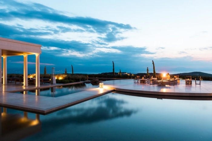 Θα περίμενε κανείς ότι το πιο πολυτελές ξενοδοχείο της χώρας θα υποδέχονταν τους απαιτητικούς επισκέπτες του σε κάποια περιοχή της Μυκόνου ή της Σαντορίνης. Και όμως..