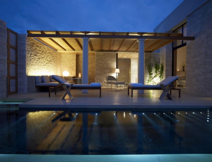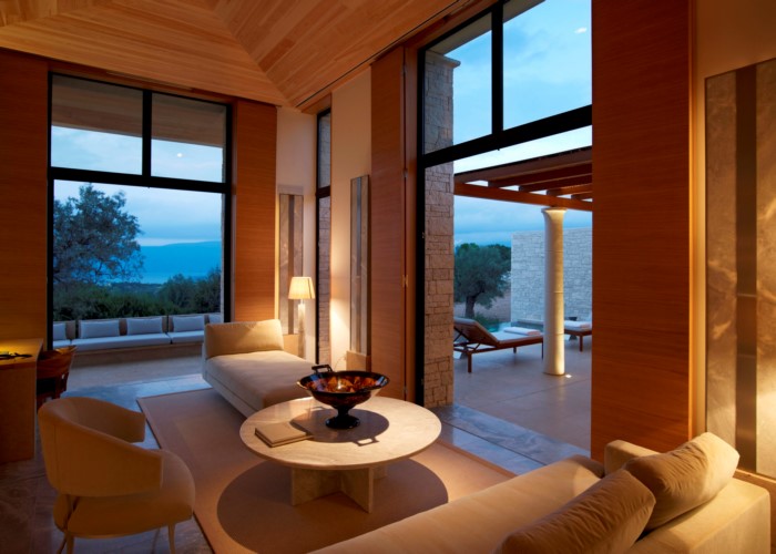Μέσα έχουν τζάκι, καθιστικό, μπάνιο και δύο dressing areas. Βρίσκονται σε διάφορα επίπεδα γύρω από τα κεντρικά κτίρια. Η βεράντα είναι επίσης 100 τετραγωνικών και η θέα που έχεις από κει είναι ονειρεμένη.