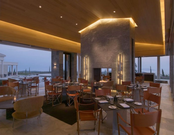 Σχεδιασμένο από το φημισμένο αρχιτέκτονα Ed Tuttle, στο ξενοδοχείο διακρίνονται μια μεγαλειώδη μαρμάρινη είσοδος, γύρω από την οποία είναι συγκεντρωμένα τα κεντρικά κτίρια -θυμίζοντας την αρχαία ελληνική αγορά- ενώ στο κέντρο η πισίνα ανάκλασης με μαγευτική θέα στη θάλασσα, σηματοδοτεί την “καρδιά” του και είναι ο κεντρικός άξονας γύρω από τον οποίο αναπτύσσεται.