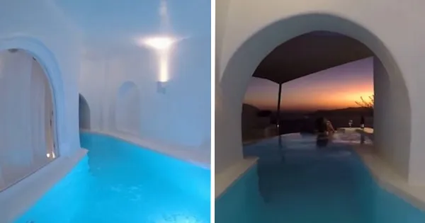 Τούνελ νερού οδηγεί σε ιδιωτική πισίνα και βρίσκεται σε ξενοδοχείο στη Σαντορίνη. Όμοιο του δεν έχετε ξαναδεί