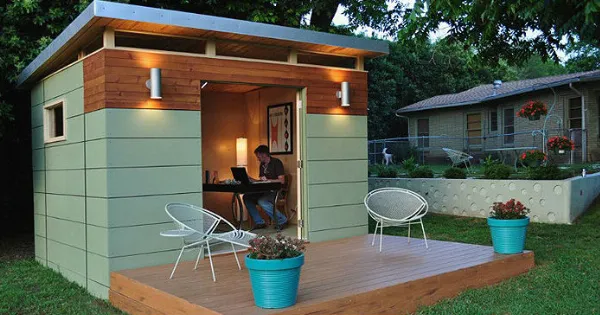 Η νέα μόδα επιτάσσει τα γραφεία να βρίσκονται ξεχωριστά από το σπίτι και κατά προτίμηση σε κάποια αυλή, εάν αυτό είναι εφικτό φυσικά. Μπορεί να εξυπηρετήσουν ως γραφείο, καλλιτεχνικά στούντιο, στούντιο yoga και ό,τι άλλο επιθυμεί κανείς.