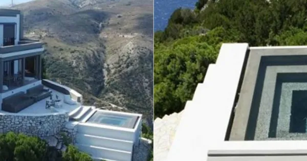 Η εξοχική κατοικία βρίσκεται ανάμεσα σε δύο διάσημες παραλίες της βορειοδυτικής Κεφαλονιάς, σκαρφαλωμένη ή καλύτερα κρεμασμένη 300 μέτρα πάνω από την θάλασσα.