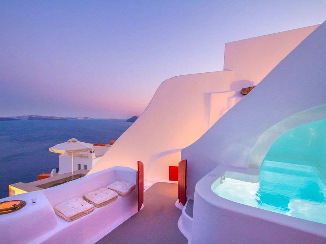 Πρόκειται για ένα σπίτι-σπηλιά στην Οία της Σαντορίνης.