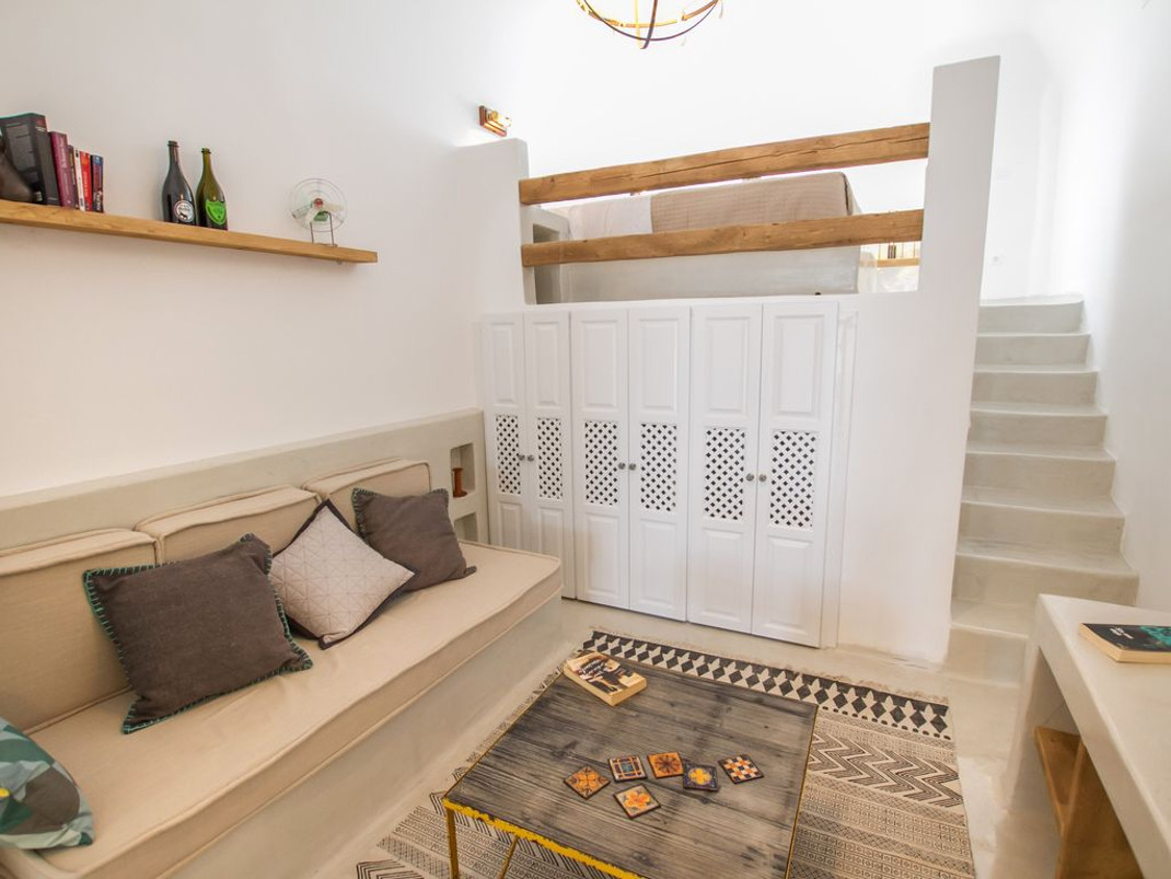 Το εσωτερικό του σπιτιού των 35 τετραγωνικών μέτρων, μπορεί να φιλοξενήσει 2-4 άτομα. Περιλαμβάνει ενσωματωμένο king size κρεβάτι και δύο ενσωματωμένους καναπέδες-κρεβάτια.