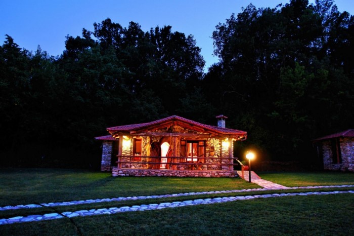 Η πέτρα του παρακείμενου ποταμού διακοσμεί την κάθε κατοικία τόσο εσωτερικά όσο και εξωτερικά. Στον περιβάλλοντα χώρο έχει κατασκευαστεί μια χαμηλή πισίνα ανάλογης αρχιτεκτονικής που πλαισιώνεται από γκαζόν και πέτρινα μονοπάτια.