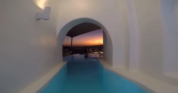 Στο βίντεο που ανάρτησε στο YouTube, τον βλέπουμε να διασχίζει το δωμάτιο, μπαίνει στην τουαλέτα και από εκεί μέσω μια κρυφής πόρτας βρίσκεται μπροστά σε μια έκπληξη. Η πισίνα ξεκινά, ένα τούνελ γεμάτο νερό που οδηγεί σ΄ένα μαγικό σημείο με ένα απίστευτο ηλιοβασίλεμα.