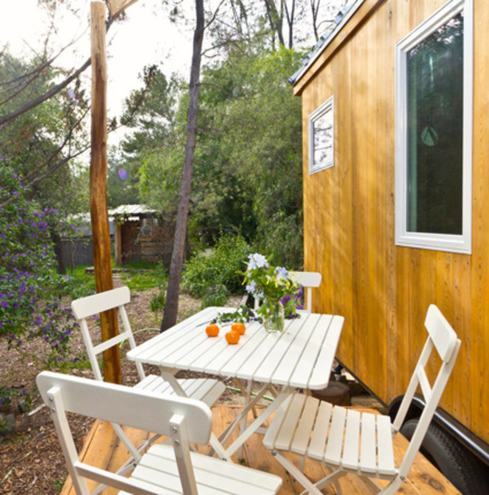 Εχοντας στη διάθεσή της 40.000 δολάρια και το όνειρο μιας πιο απλής ζωής, η σχεδιάστρια από την Καλιφόρνια έχτισε το σπίτι των ονείρων της πάνω σε ρόδες. «Δεν είναι προσωρινό σπίτι» λέει η ίδια. «Δεν θα το αποχωριστώ ποτέ». Μάλιστα, αναφέρει ότι αποτελεί εξαιρετικό μέρος για να περνάει χρόνο μαζί με τους φίλους της. «Ποτέ δεν είχα διασκεδάσει τόσο πολύ όσο από τότε που χτίστηκε το μικροσκοπικό σπίτι μου», προσθέτει.