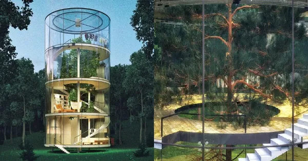 Γυάλινο σπίτι: H εταιρεία A.Masow Design Studio ανακοίνωσε ότι το concept τους «Ένα Δέντρο στο Σπίτι», είναι πραγματικότητα. Ένα κυλινδρικό, γυάλινο σπίτι που χτίστηκε γύρω από ένα δέντρο, δίνει ένα εντελώς νέο νόημα στον όρο «δεντρόσπιτο».