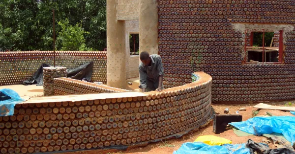 Γεμίζοντας πλαστικά μπουκάλια με άμμο και κολλώντας τα μαζί με λάσπη ή τσιμέντο, οι τοίχοι που δημιουργούνται είναι πραγματικά αλεξίσφαιροι, πυρίμαχοι και διατηρούν μια άνετη εσωτερική θερμοκρασία των 18 βαθμών Κελσίου το καλοκαίρι!