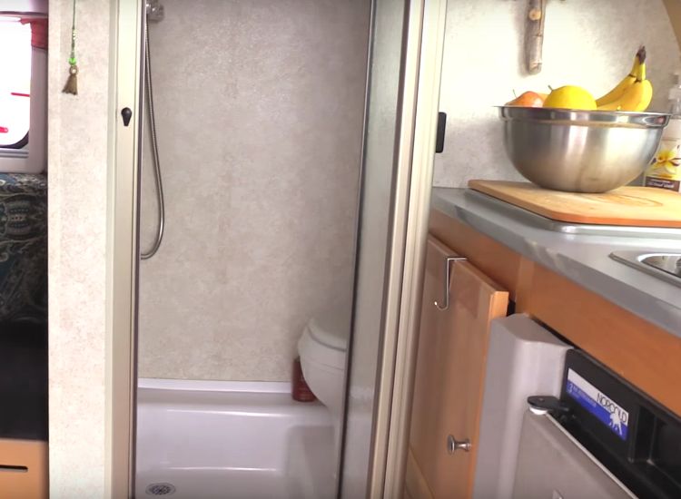 Έχει το μικρότερο μπάνιο που έχετε δει ποτέ, το οποίο είναι ουσιαστικά ένα μικρό ντουλάπι με τουαλέτα που λειτουργεί και σαν ντους.