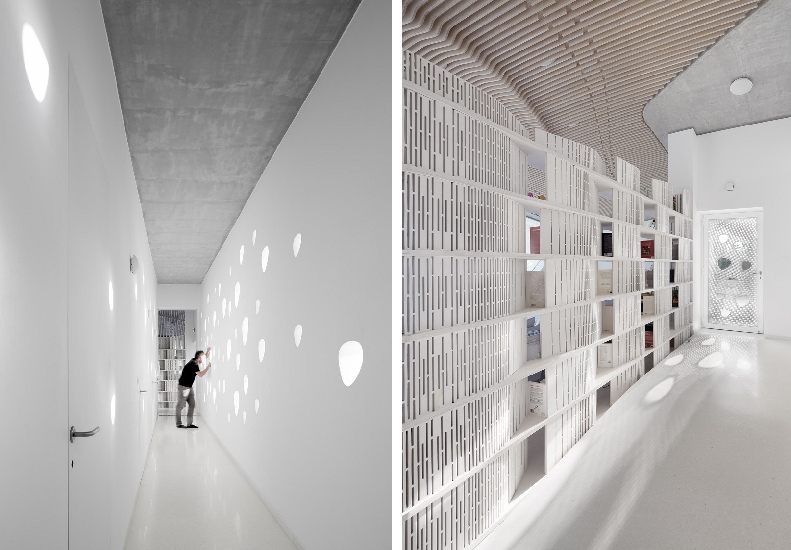 Η βίλα περιλαμβάνει τρία υπνοδωμάτια και μπάνια, τα οποία βρίσκονται στην ανατολική πλευρά, ενώ το μοναδικό design με τους λευκούς τοίχους με τις τρύπες, τα μίνιμαλ καθιστικά και την τζαμαρία σε ημικύκλιο σχήμα είναι μερικοί λόγοι που το κάνουν ακόμη πιο πολυτελές και ιδιαίτερο.