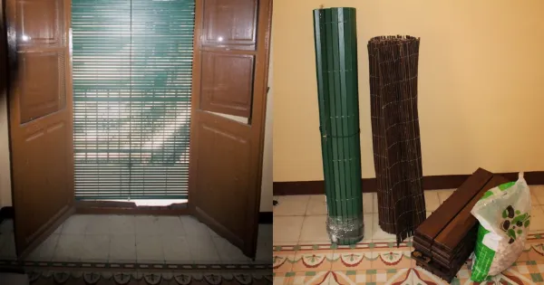 Το πρώτο βήμα ήταν να εγκαταστήσει τις περσίδες. Έπειτα από μια ώρα δουλειάς, οι περσίδες ήταν έτοιμες.