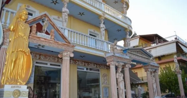 Η πολυκατοικία αυτή, όπως και να το κάνουμε, είναι ένα ορόσημο για το δήμο Αιγάλεω. Ανήκει στον κ. Παναγιώτη Νουβέλογλου. Έχω περάσει εκατοντάδες φορές από το συγκεκριμένο σημείο κι αρκετές από αυτές στάθηκα ακριβώς απ’ έξω για να τσεκάρω τα ελληνιστικά αντικείμενα κι αγαλμάτα που το διακοσμούν. Ποτέ όμως δεν είχα την ευκαιρία να γνωρίσω τον ιδιοκτήτη. Και να που ξημέρωσε η μέρα που αποφάσισα να πάω να του χτυπήσω την πόρτα…