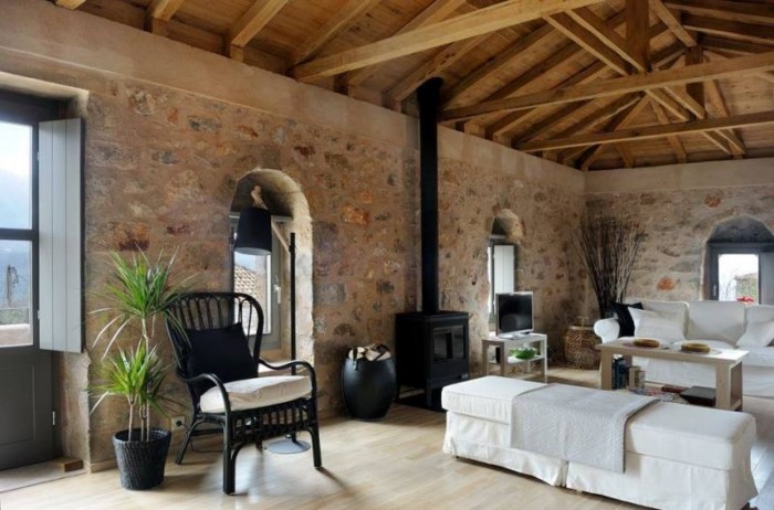 Πέτρινα ανώφλια, εσωτερικές αυλές, καμάρες στο κατώι και παραδοσιακή λιθοδομή είναι τα δομικά στοιχεία της παραδοσιακής αρχιτεκτονικής.
