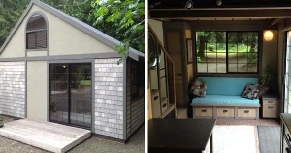 Μάλιστα, για να επιτύχει να έχει σε έναν τόσο μικρό χώρο και ένα ευρύχωρο σαλόνι, αλλά και μία κρεβατοκάμαρα όπου θα χωρά υπέρδιπλο κρεβάτι, κατασκεύασε έναν εσωτερικό loft ακριβώς πάνω από την κουζίνα στον οποίο βρίσκεται το υπνοδωμάτιο, ενώ στη σκάλα που οδηγεί στη σοφίτα-κρεβατοκάμαρα, έχουν ενσωματωθεί αποθηκευτικοί χώροι, αλλά και ηλεκτρικό τζάκι.