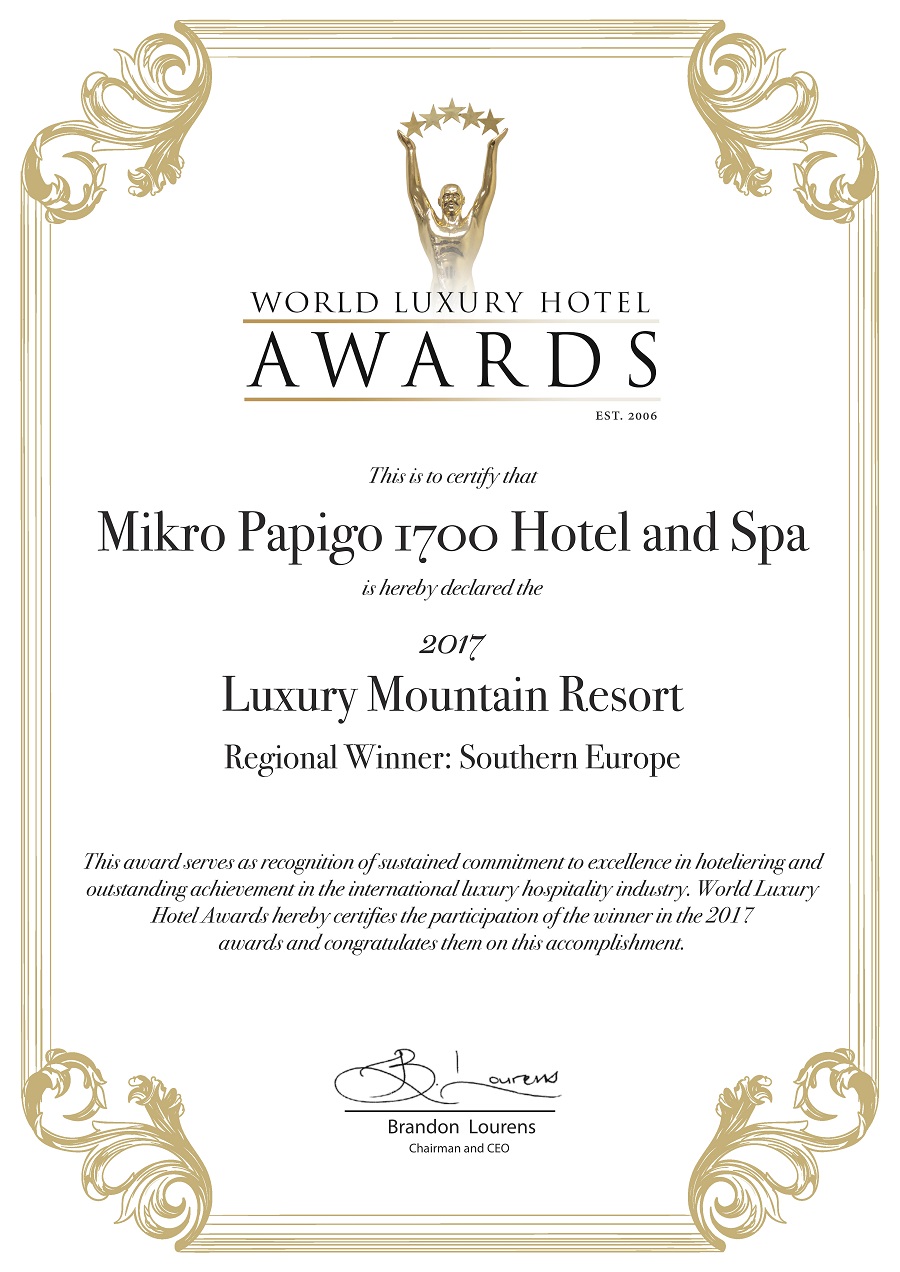 Μεγάλη διάκριση για το ξενοδοχείο του χρυσού ολυμπιονίκη Κώστα Κεντέρη στο Μικρό Πάπιγκο, στα Ζαγοροχώρια. Το Mikro Papigo 1700 Hotel & Spa που «τρέχει» ο ίδιος ο Κεντέρης και η σύζυγός του αποτέλεσε τον πρεσβευτή του Ελληνικού Ορεινού Τουρισμού στα Παγκόσμια Βραβεία World Luxury Hotel Awards 2017.