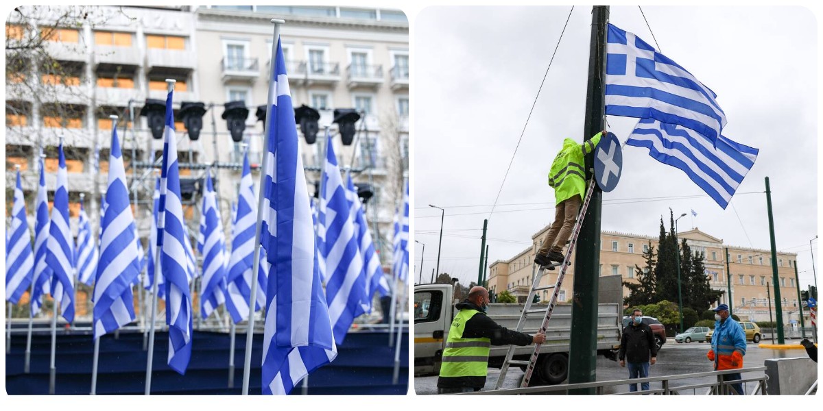 25η Μαρτίου παρέλαση: Γεμάτο με ελληνικές σημαίες είναι το Σύνταγμα ενόψει της Εθνικής Εορτής της 25ης Μαρτίου. Συνολικά 200 ελληνικές σημαίες έχουν τοποθετηθεί στην κάτω πλευρά της Πλατείας Συντάγματος ενώ έχει στηθεί επίσης ένα ειδικό παρτέρι για το 1821.