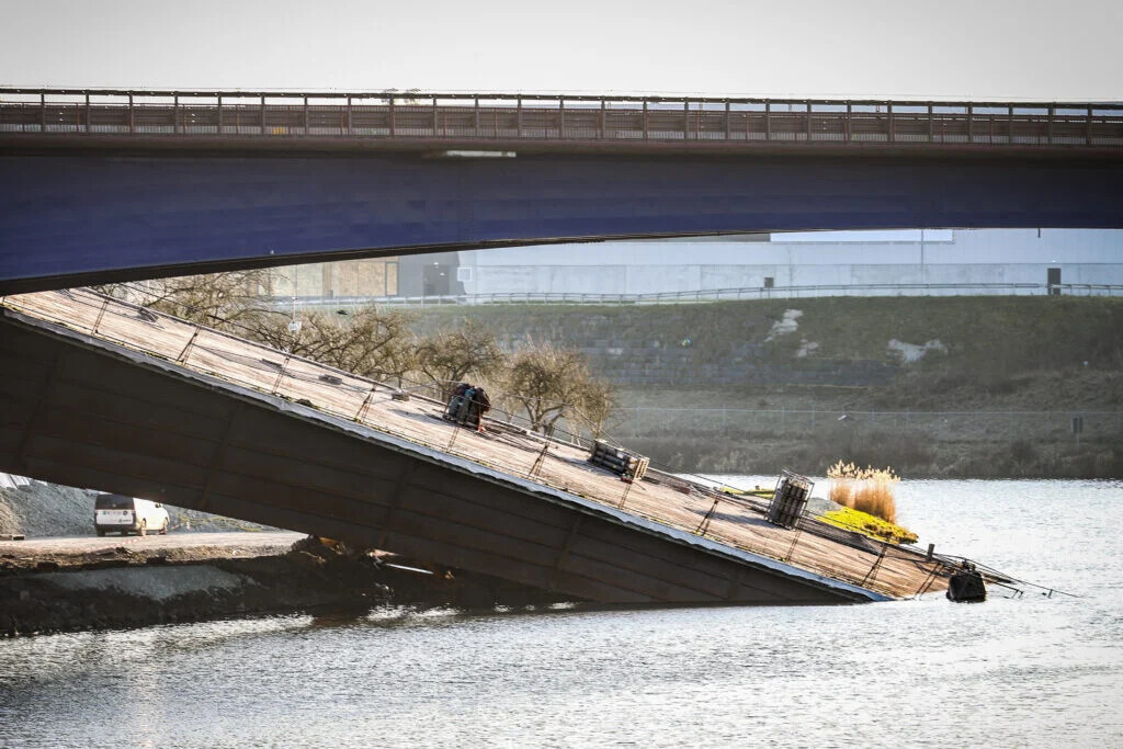 Η κατάρρευση του τμήματος της χαλύβδινης γέφυρας είχε ως αποτέλεσμα η κατασκευή να πέσει πάνω σε φορτηγίδα, η οποία ήταν αγκυροβολημένη στο σημείο και χρησιμοποιούνταν για την απομάκρυνση των μπάζων. Το βελγικό πρακτορείο Belga ανέφερε ότι τη στιγμή του δυστυχήματος, στη γέφυρα εργάζονταν συνολικά δώδεκα άτομα.