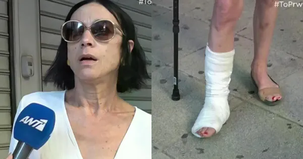 Η Έλενα Τοπαλίδου έκανε μία σπάνια τηλεοπτική εμφάνιση στην κάμερα της εκπομπής του ΑΝΤ1, Πρωινό, προκαλώντας σοκ σε όλους, καθώς φορούσε γύψο στο πόδι της και κρατούσε μπαστούνι στο χέρι της.