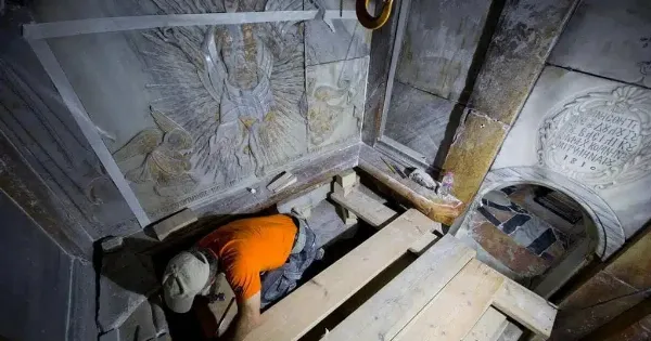 Μέρος του αρχικού σπηλαίου επίσης αποκαλύφθηκε, καθώς η ομάδα των ερευνητών δημιούργησε άνοιγμα στην πλευρά του τάφου. «Αυτός είναι ο Ιερός Βράχος που λατρεύεται εδώ και αιώνες, αλλά μόλις τώρα για πρώτη φορά μπορεί κάποιος πραγματικά να τον δει», δήλωσε η καθηγήτρια του ΕΜΠ, Αντωνία Μοροπούλου, επικεφαλής των έργων αναστήλωσης του Πανάγιου Τάφου.