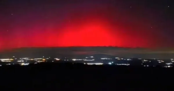 Αυτό το σπάνιο θέαμα οφειλόταν σε μια ιδιαίτερα ισχυρή γεωμαγνητική καταιγίδα, μια ηλιακή έκλαμψη που επηρέασε το Βόρειο Ημισφαίριο.