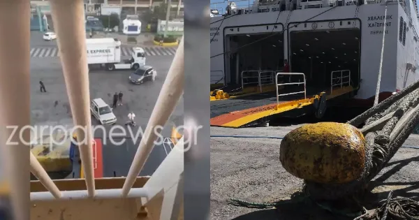 Ένας αργοπορημένος επιβάτης, που όπως φαίνεται δεν ήθελε με τίποτα να χάσει το πλοίο σε μία απέλπιδα προσπάθεια γαντζώθηκε πάνω στον καταπέλτη. Πιο αναλυτικά, όπως φαίνεται στην εικόνα που δημοσίευσε το zarpanews.gr, άνδρας είναι γαντζωμένος από τον καταπέλτη. Ωστόσο η προσπάθεια ήταν μάταιη καθώς δεν τα κατάφερε, σκόνταψε και έπεσε πάνω στην προβλήτα του λιμανιού. Για καλή του τύχη, η πτώση έγινε στο έδαφος και όχι στη θάλασσα και δεν τραυματίστηκε