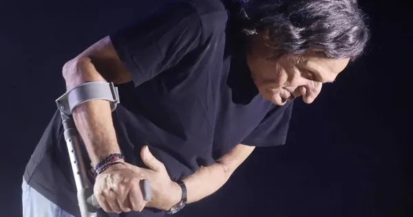 Η εμφάνιση του Βασίλη Παπακωνσταντίνου με πατερίτσα στη συναυλία του