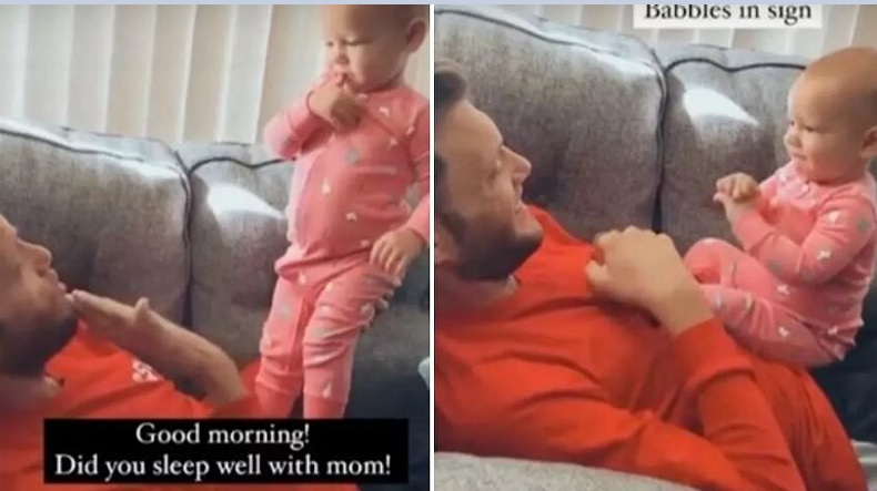 «Καλημέρα, κοιμήθηκες καλά εχτές με τη μαμά;» ρωτάει ο Ζακ τη μικρούλα. Η μπέμπα απαντά με νοήματα που είναι ναι μεν δύσκολο να ερμηνευτούν, αλλά είναι εξαιρετικά τρυφερά.