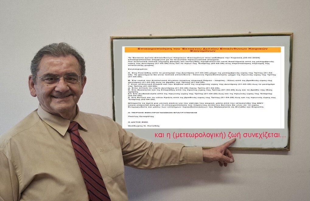 «Το τελευταίο έκτακτο δελτίο της μετεωρολογικής μου καριέρας στην ΕΜΥ. Μετά από 40 χρόνια πλήρους Δημόσιας υπηρεσίας αποχωρώ, διατηρώντας όμως ενεργή την παρουσία μου στον χώρο της Μετεωρολογίας, της Επιστήμης που θα εξακολουθήσω να υπηρετώ μέσα από την προσωπική μου ιστοσελίδα, τα κοινωνικά δίκτυα, τον Ακαδημαϊκό χώρο και τα Μέσα Ενημέρωσης.