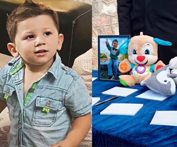Συγκλονιστική είναι η εικόνα πάνω στο τραπέζι που βρίσκεται η φωτογραφία του 3χρονου Άγγελου με το αγαπημένο του αρκουδάκι, αλλά και διάφορα παιχνίδια που αφήνει ο κόσμος που πηγαίνει να το αποχαιρετήσει.